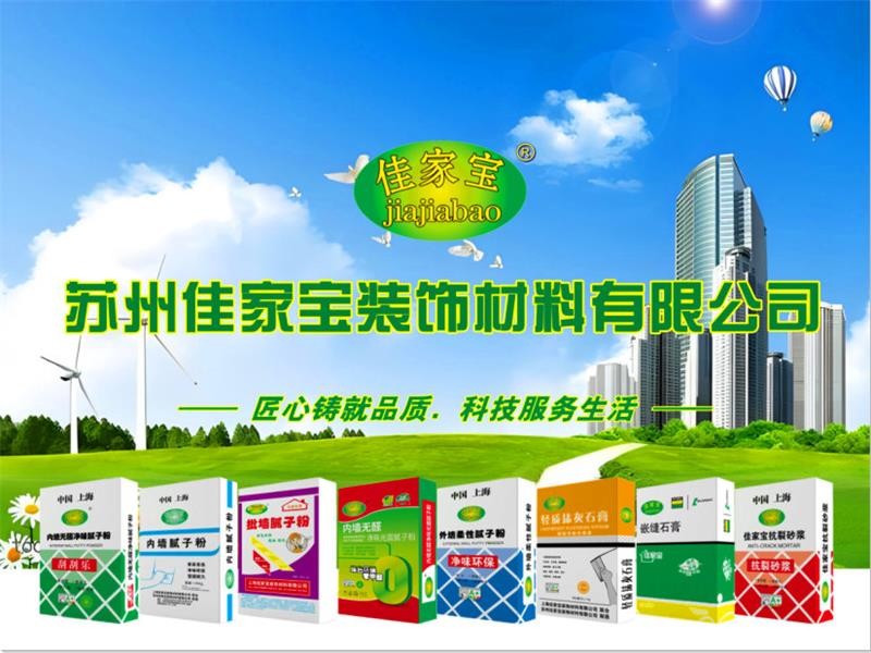 苏州佳家宝装饰材料有限公司是一家集建筑装饰材料生产、加工、销售服务于一体的企业。公司自成立以来,始终秉承“质量、服务社会”的经营理念,以“重合同,守信誉”的基本原则。主营:内墙腻子粉、外墙腻子粉、防霉腻子粉、轻质抹灰石膏、粉刷石膏、抗裂砂浆等,公司一贯坚持“品质至坚,服务至诚”的理念,以更好的服务和广大用户建立并保持了长久良好的合作关系。我们诚邀社会各界新老朋友光临指导、加深了解、真诚合作。