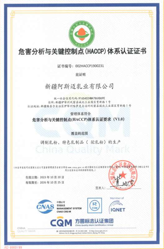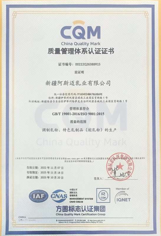 阿斯迈乳业座落于天山脚下伊犁河畔,是陕西援疆重点企业,一期项目已投产。工厂建设有奶粉湿法生产车间、奶粉干法生产车间、奶粉检测中心、消防监控室、锅炉动力车间、污水处理车间、综合办公楼、员工餐厅及库房配套设施。新疆阿斯迈乳业依托伊犁恰西草原八大牧场的奶源优势,从生态养殖到收奶检疫,从入厂生产到成品上市,层层把关,严守品质,年产乳粉突破5000吨。