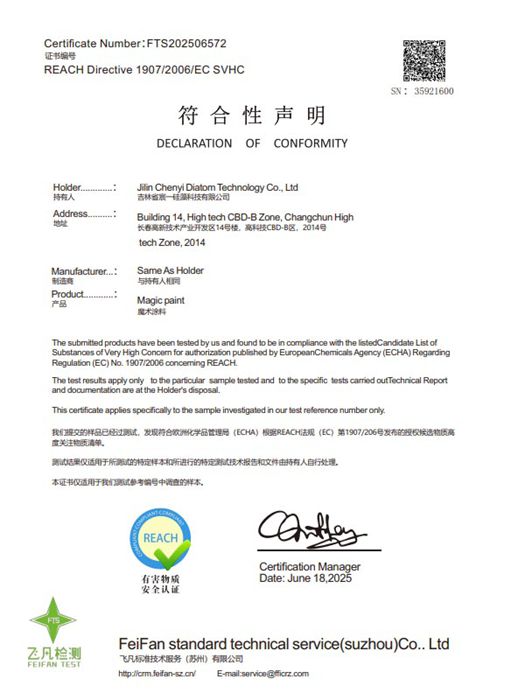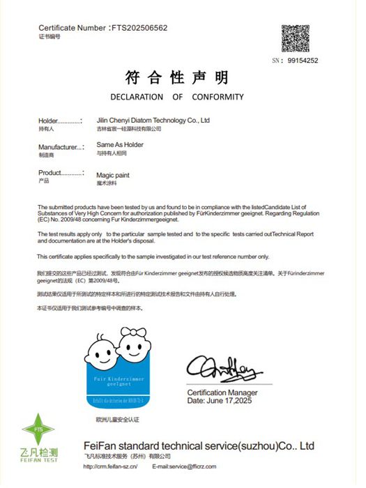 经营范围:硅藻土产品研发、销售;硅藻土产品施工技术研发;水性涂料销售(依法须经批准的项目,经相关部门批准后方可开展经营活动)。