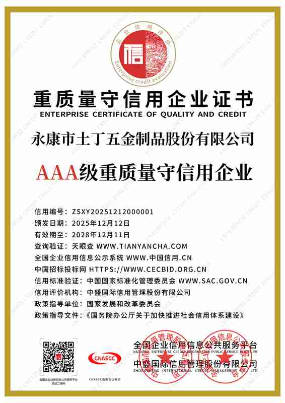 永康市土丁五金制品股份有限公司投资创建于2016年09月21日,专注大健康产业近10年,通过了BSCI验厂,质量ISO9001体系认证,目前拥有各类大健康尖端项目产品70余项专利,以及建设有企业完善的型式实验室,是集研发/生产/销售/贸易出口于一体的国家高新技术企业。土丁股份有限公司始终致力于研发及制造大健康产业产品,并在所属领域发光出彩,已经成为国内外知名品牌的指定代理商。未来将开发更加完善的大健康产业设备套装,努力成为行业内翘楚、行业领军企业及方向标杆企业。