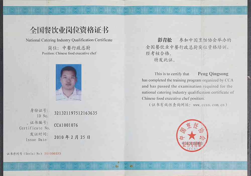 彭青松,1975年出生于江苏省宿迁市,1997年毕业于江南大学食品工程专业,后在苏州松鹤楼实习,先后师从中华名厨陈钰亮,艺承世界御厨杨贯一大师(详情介绍见网络百科),学习行政菜庖厨之精髓,得港澳斧鼎之真谛,赴京城,下南粤,海纳百川,聆恩师们教诲, 自己勤学苦练,潜心修悟.多年来,他先后在北京,上海、大连、深圳、杭州、苏州等地的著名星级酒店,担任行政总厨,厨艺总监等职,厨艺全面,擅长制作粤菜,淮扬菜等。